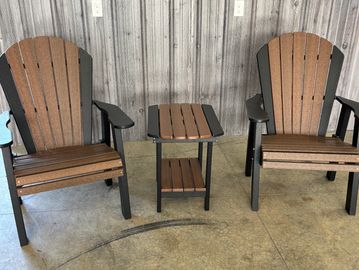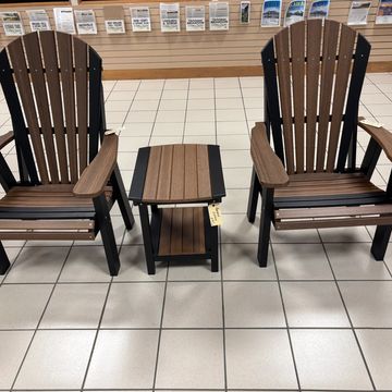 Cedar and Black Stationary Chairs and End Table
