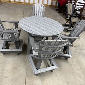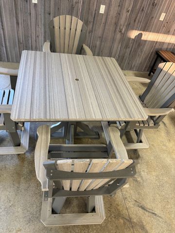 Slate and Weathered Birch 44”x44”Counterheight Table and 4 Counterheight Swivel and Rock Polywood Chairs